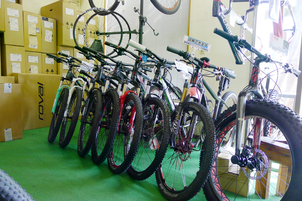 店内入り口より右手にMTBの27.5インチとファットバイクの展示