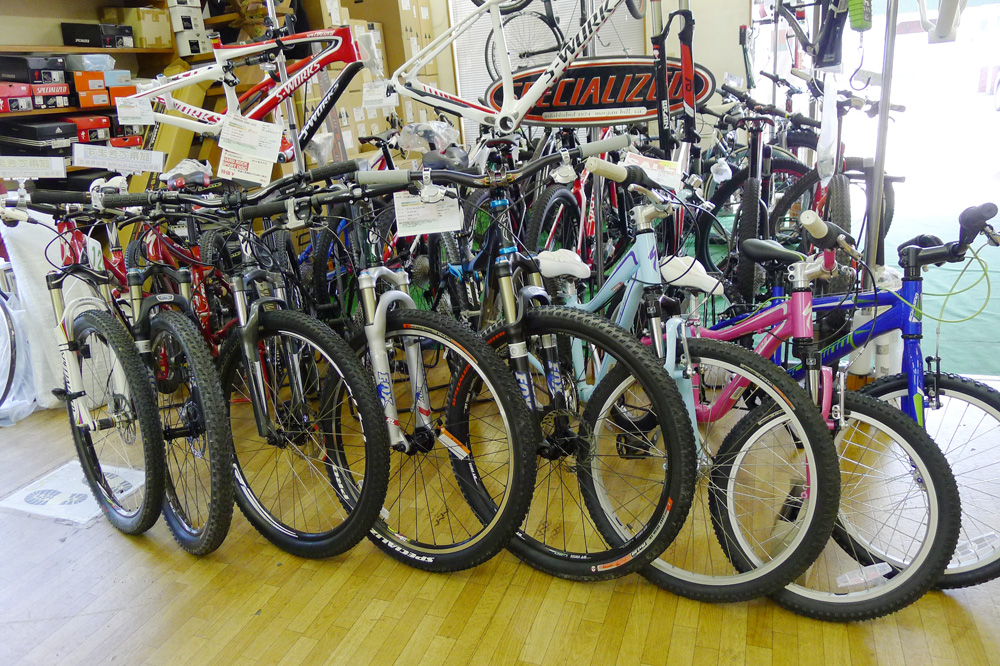 29インチの裏側には20〜24インチのキッズバイクや26インチMTBが展示