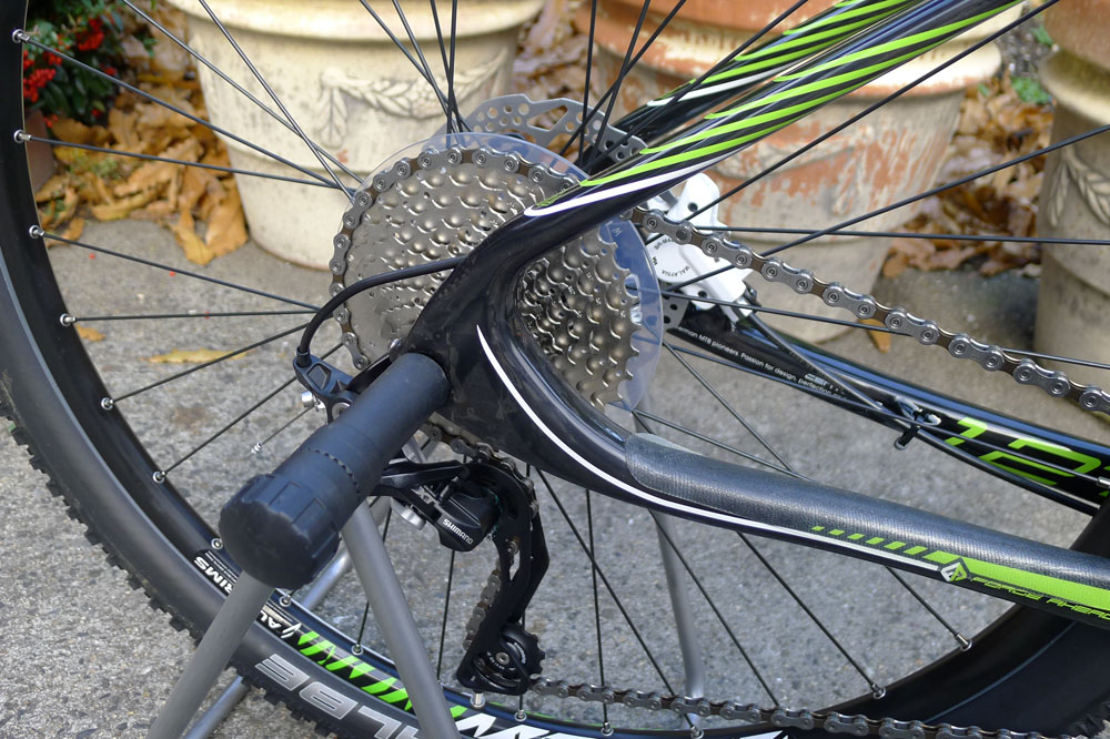 凝った造りのカーボンフレームです