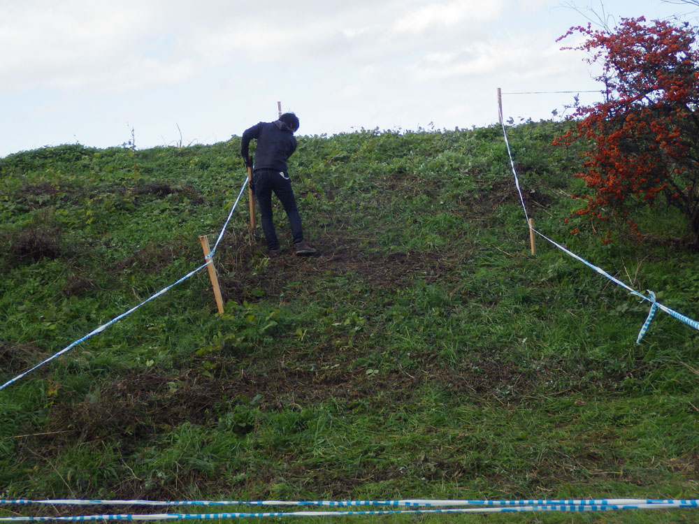 それからコースを歩いて確認した後に杭を打って行きました