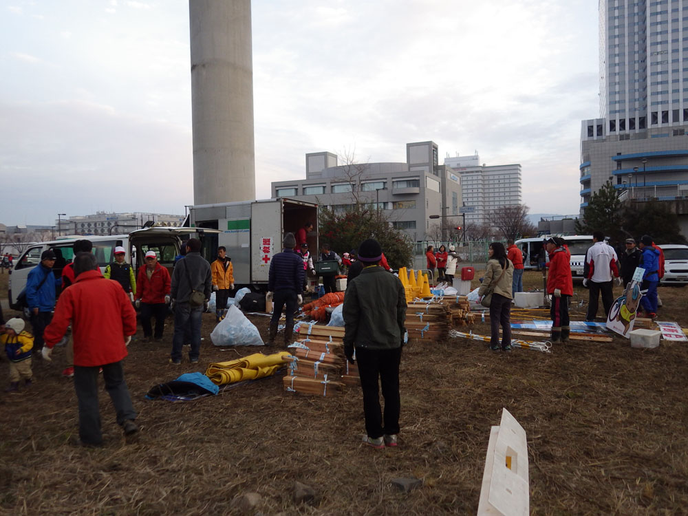 土曜日はコース設営からです。曇ってたのでじっとしてると寒い